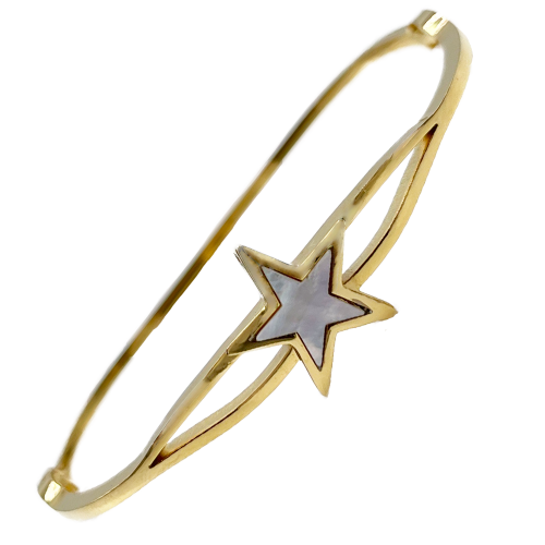 Stainless Steel Gold Pvd Bangle w/ Mother of Pearl Star Accent