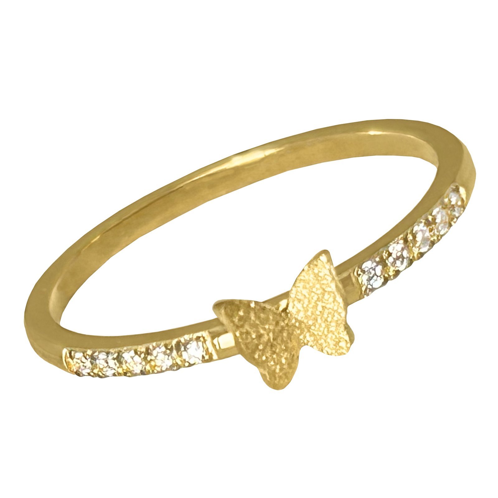 Stainless Steel Gold PVD Butterfly Ring w/ cubic zirconia stones