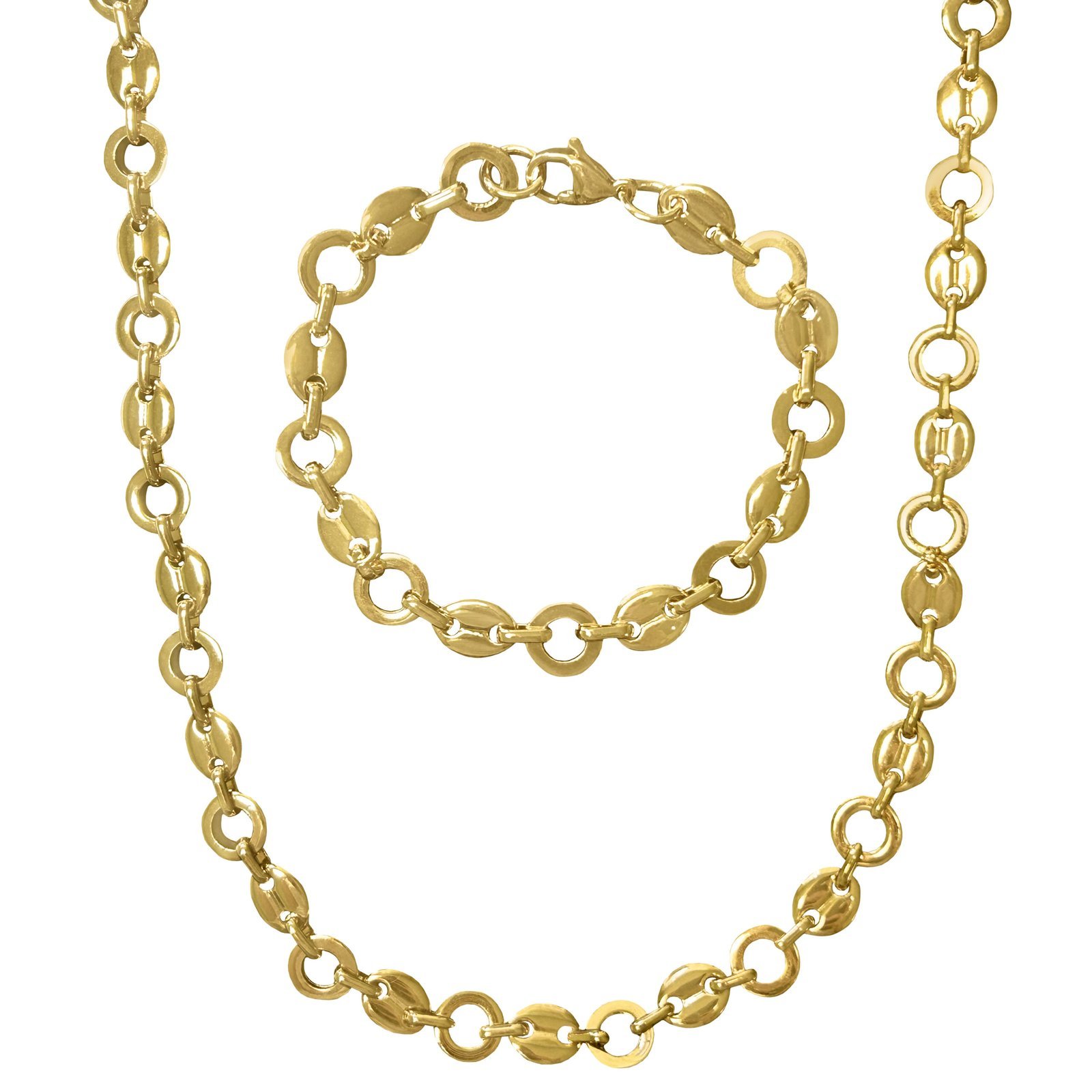 Stainless Steel Gold PVD Circle & Mariner Chain Set