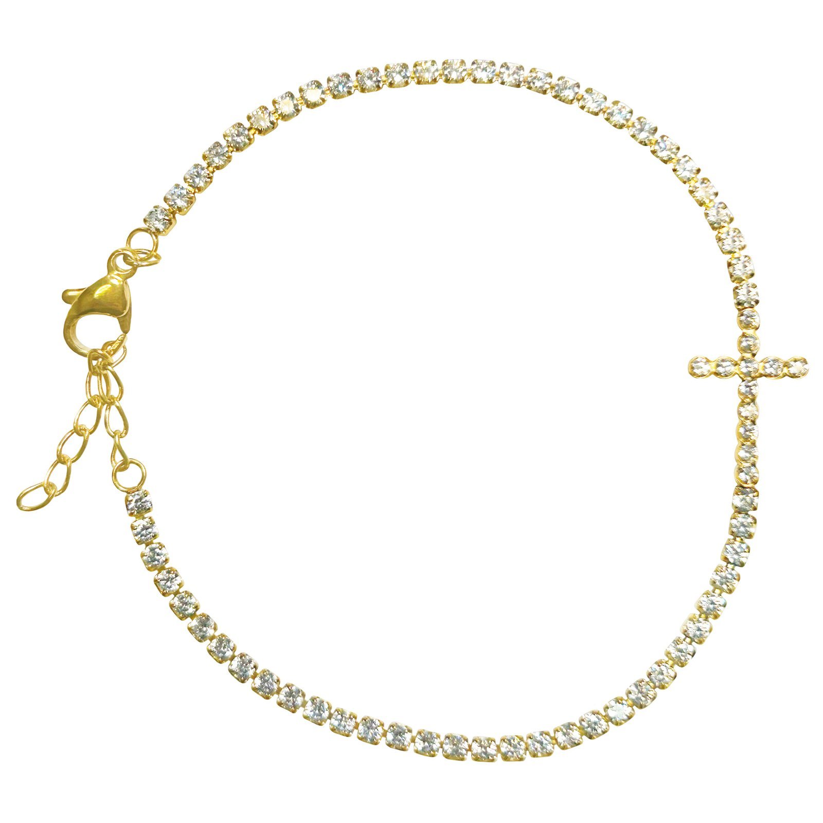 Stainless Steel Gold PVD Cross Tennis Bracelet