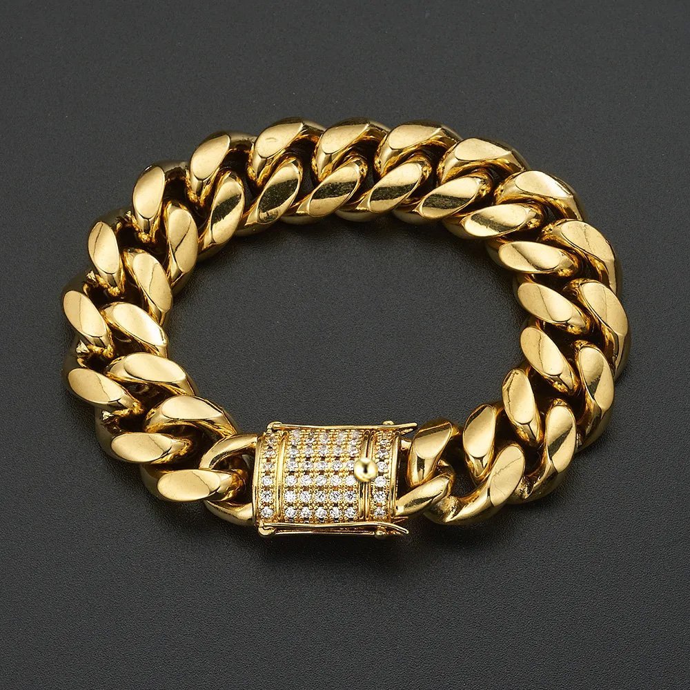 Stainless Steel Gold PVD Cuban Chain Bracelet & CNC Clasp