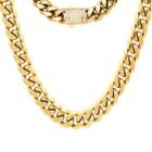 Stainless Steel Gold Pvd Cuban Chain Necklace w/ Cz Buckle Clasp