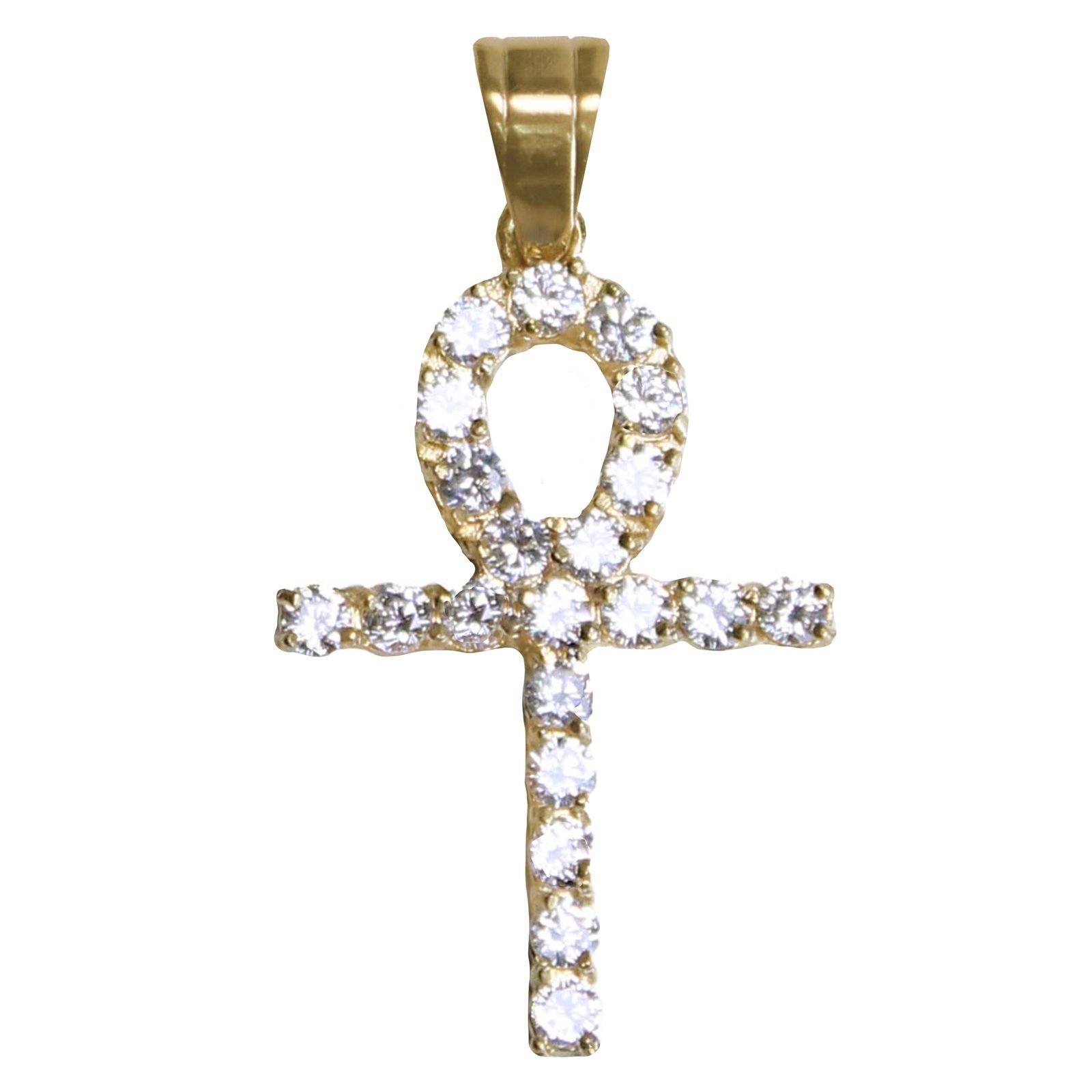 Stainless Steel Gold PVD Cubic Zirconia Encrusted Ankh Symbol Pendant