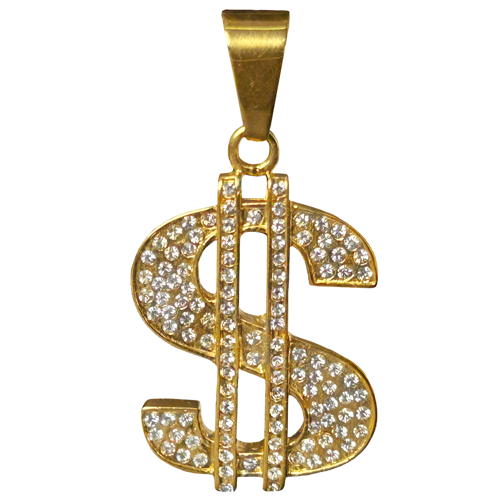 Stainless Steel Gold PVD CZ Encrusted Money Sign Pendant