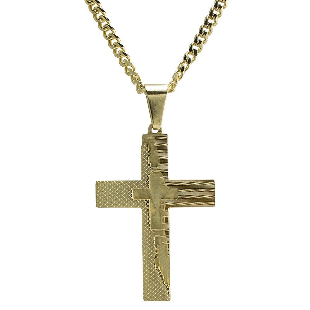 Gold Tone Design Double Cross Necklace