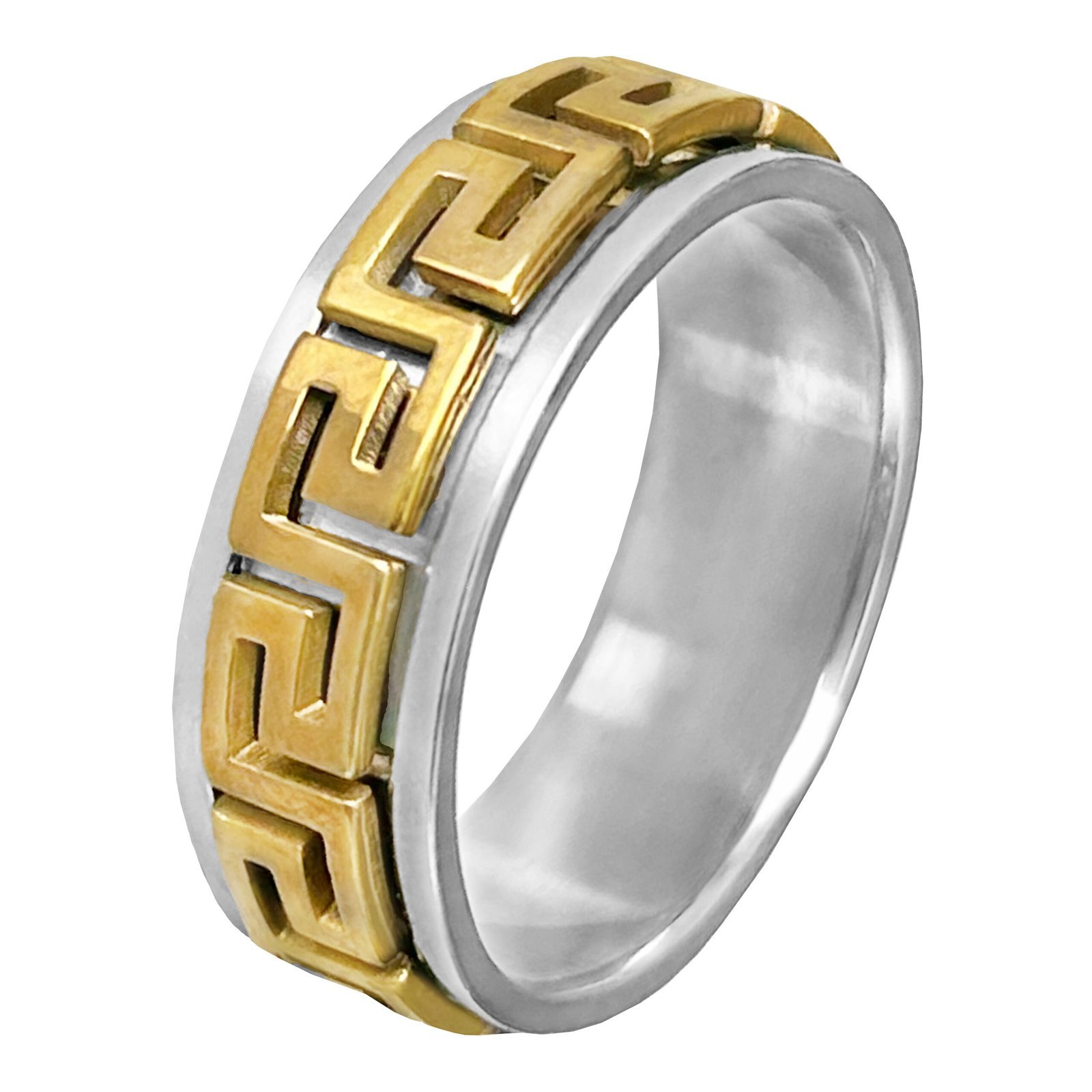 Stainless Steel Gold Pvd Greek Key Spinner Ring