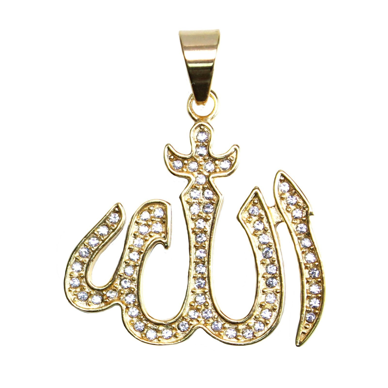 Stainless Steel Gold PVD Islam Allah CZ Encrusted Pendant