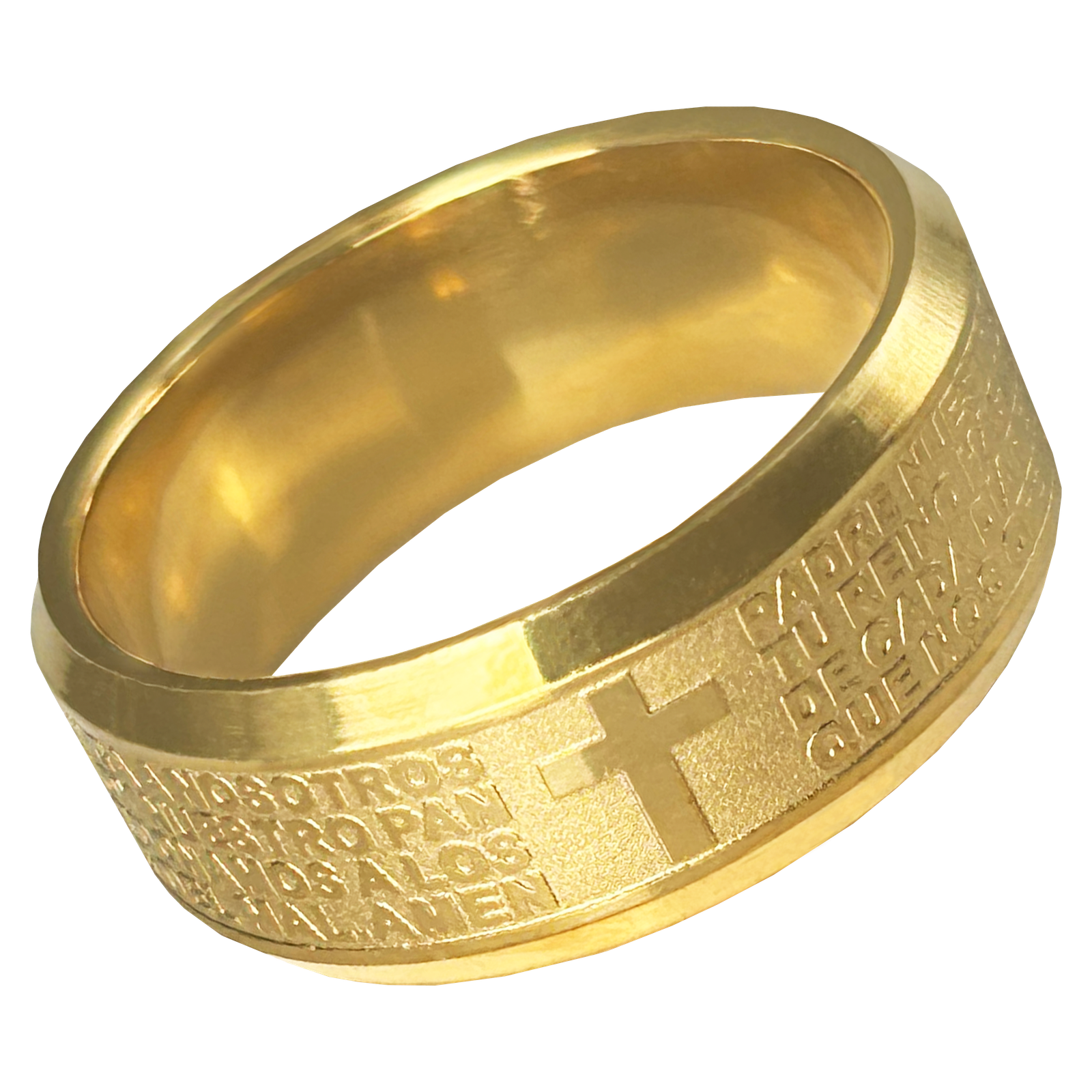 Stainless Steel Gold Pvd Padre Nuestro Ring