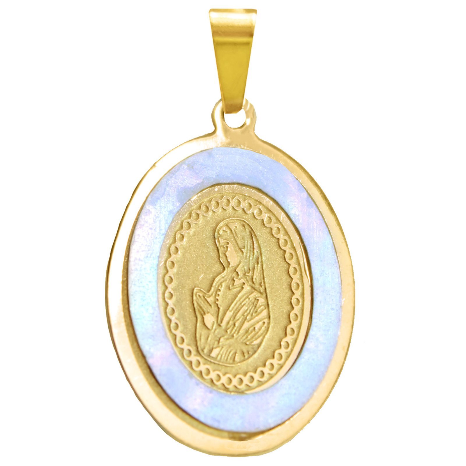 Stainless Steel Gold PVD Pendant of Virgin Mary with Opal Accent