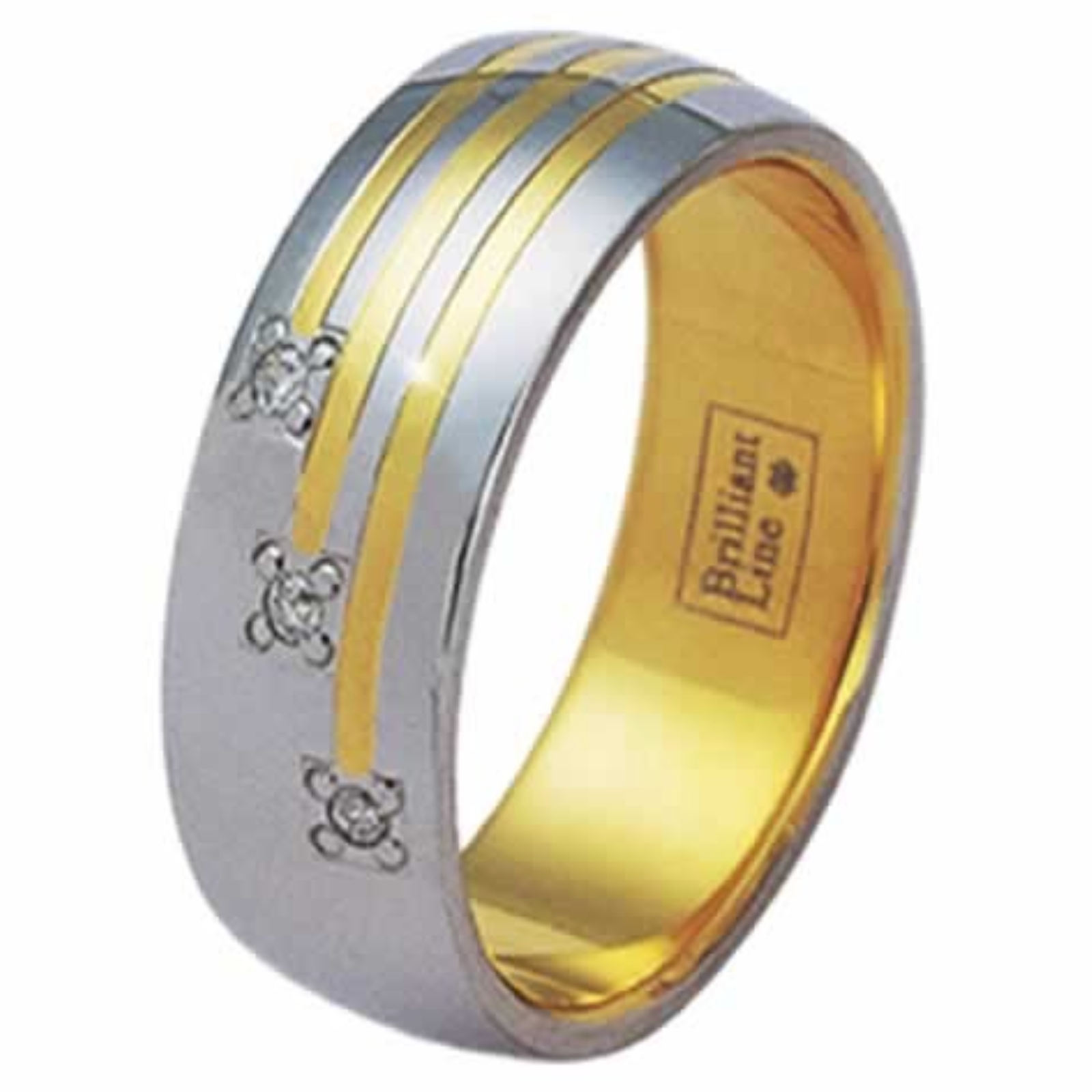 Stainless Steel/ Gold Ring with 3 Diamonds