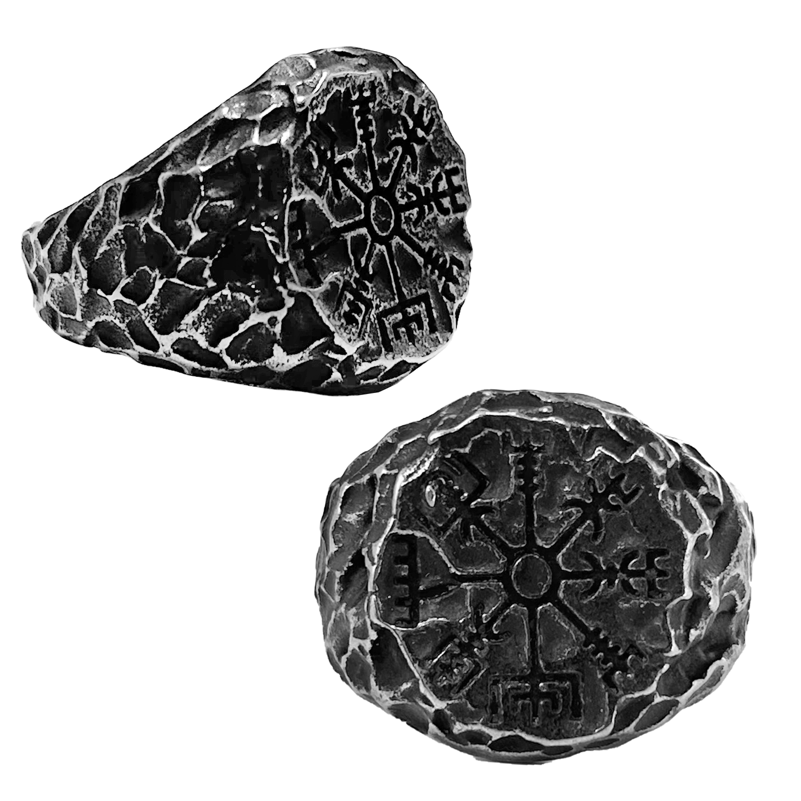 Stainless Steel Gun Color Nordic Symbols Ring