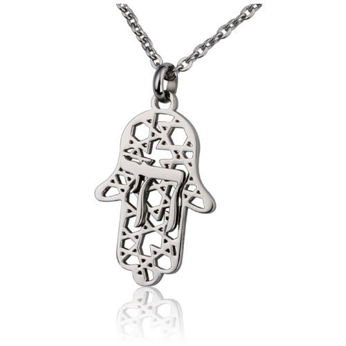 Stainless Steel Hamsa Pendant With Decorative Star Of David Background