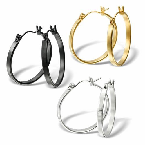 Stainless Steel Hoop Earrings. Available in 3 Colors, Black PVD ,Gold PVD , & Steel !!