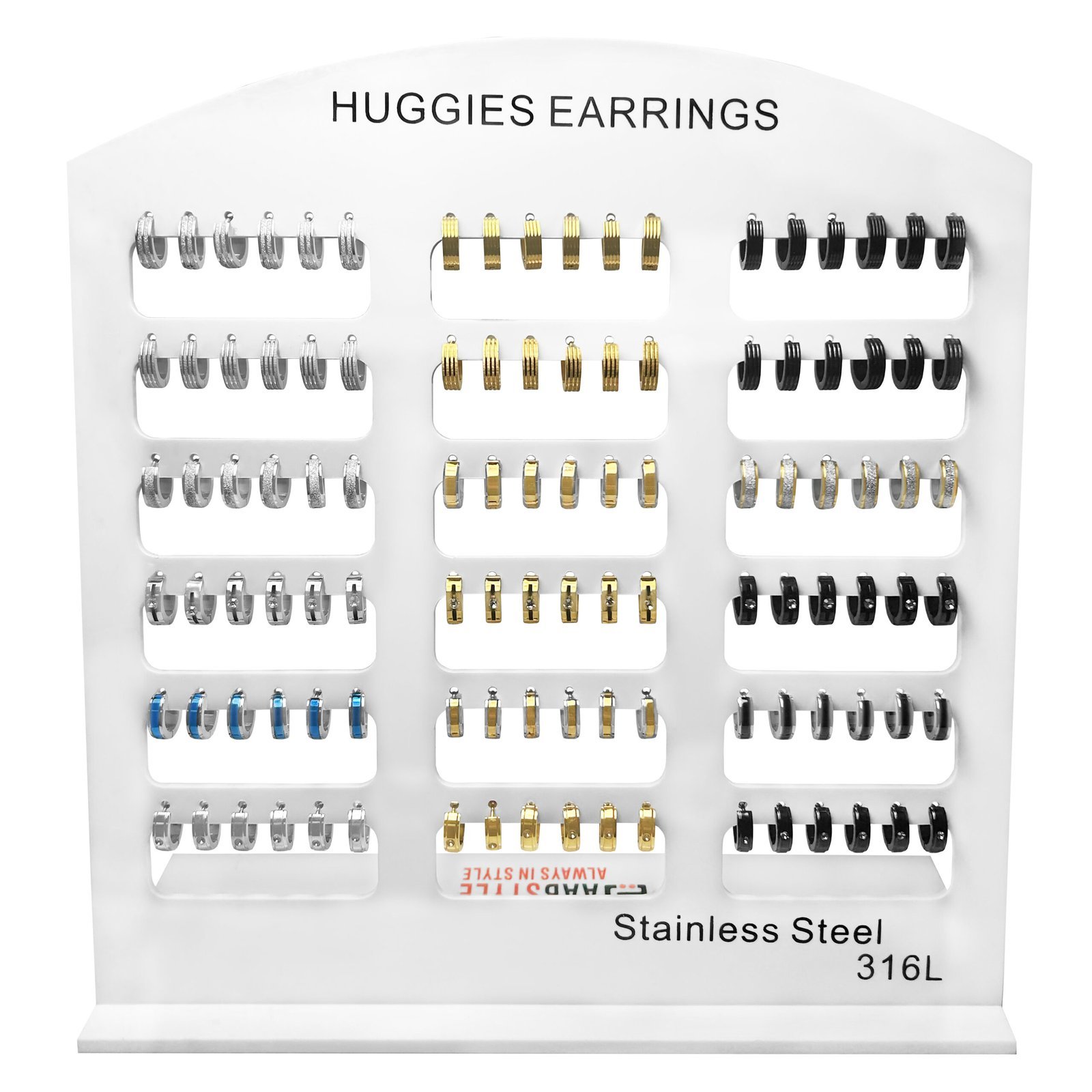 Stainless Steel Huggies Earrings Full Display