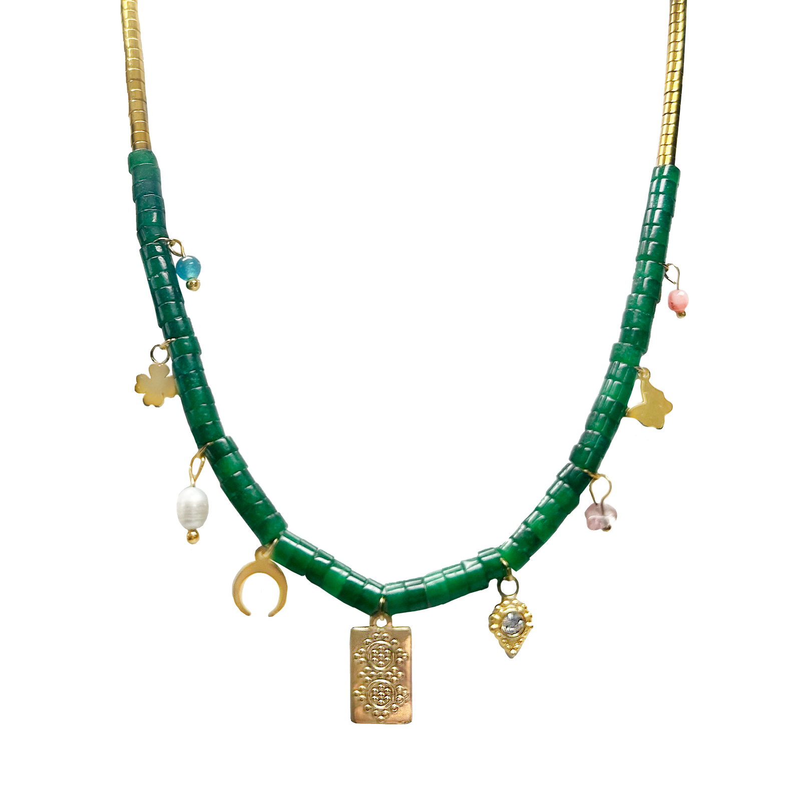Stainless Steel Jade Rondelle Bead Chain with Charms