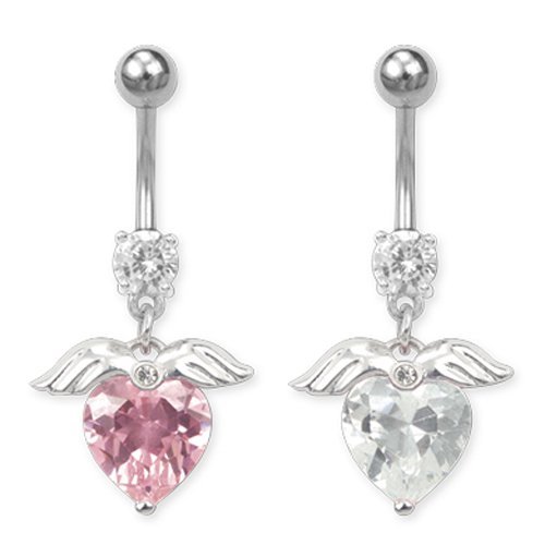 Very Nice Large Stone Heart Dangling Belly Ring With Wings.