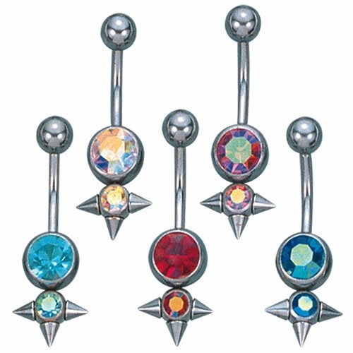 This Belly Ring has Jeweled Spikes Ball in Assorted Colors