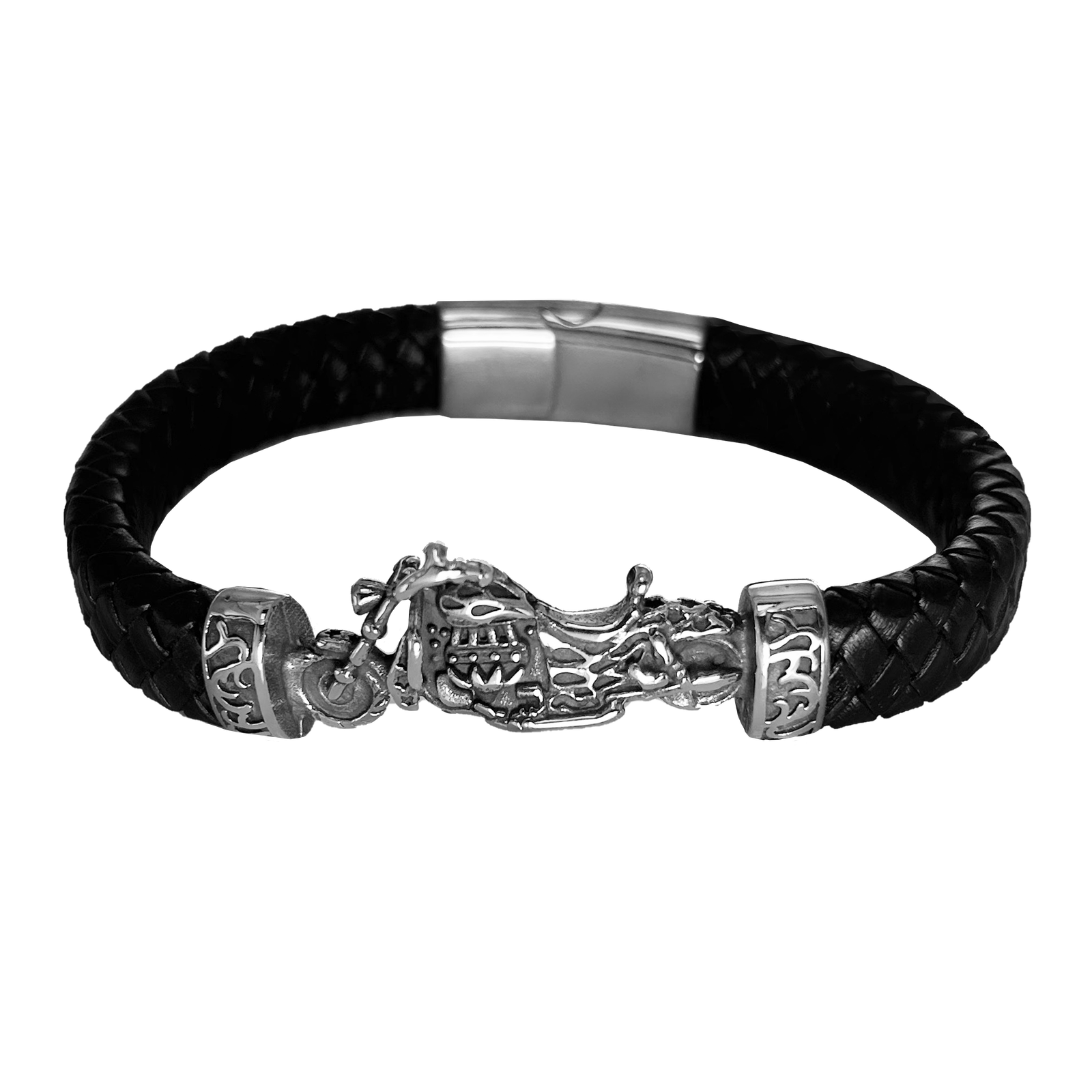 Braided Leather Bracelet w/ Stainless Steel Clasp