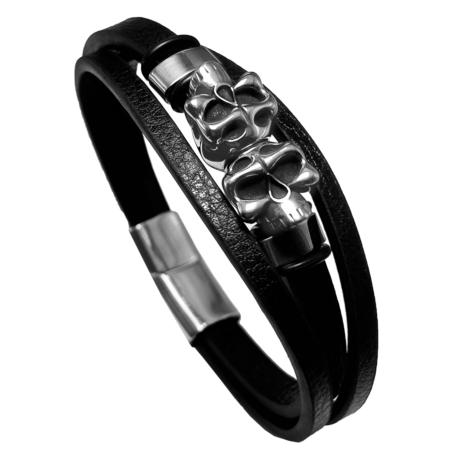 Leather Multi String Bracelet with Steel Skull Charm
