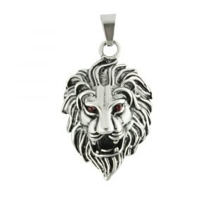 Stainless Steel Lion Head With Red CZ Eyes