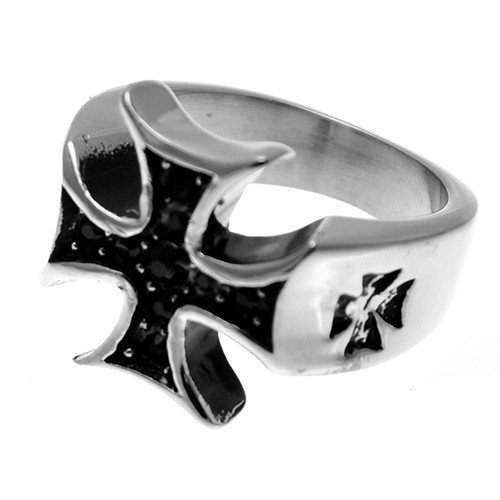 Stainless Steel Maltese Cross Biker Ring w/ Jet Colored Stones