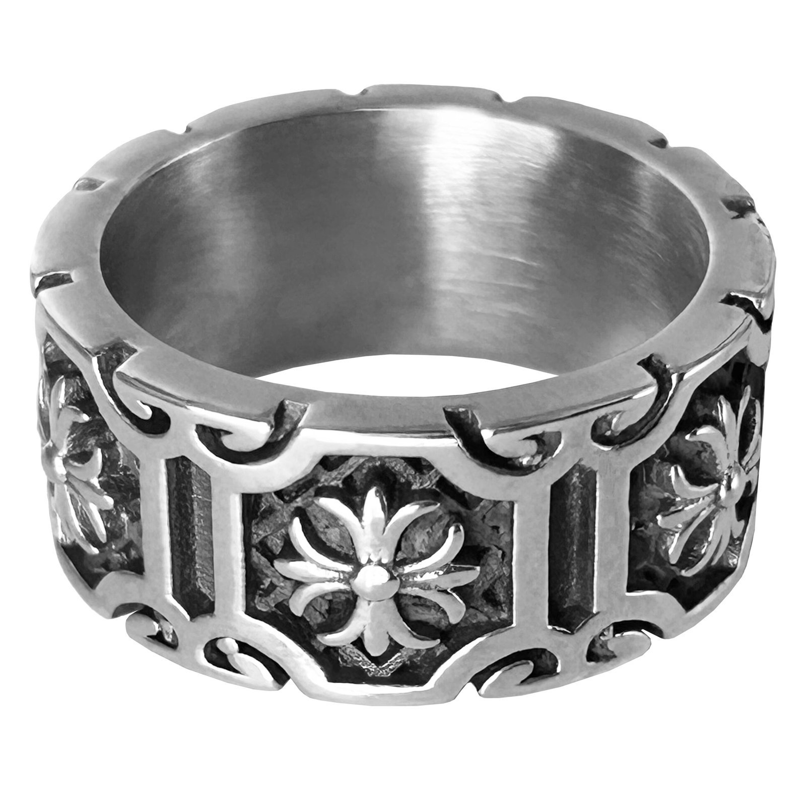 Stainless Steel Day of Dead Skull Ring w/ Gold Crosses