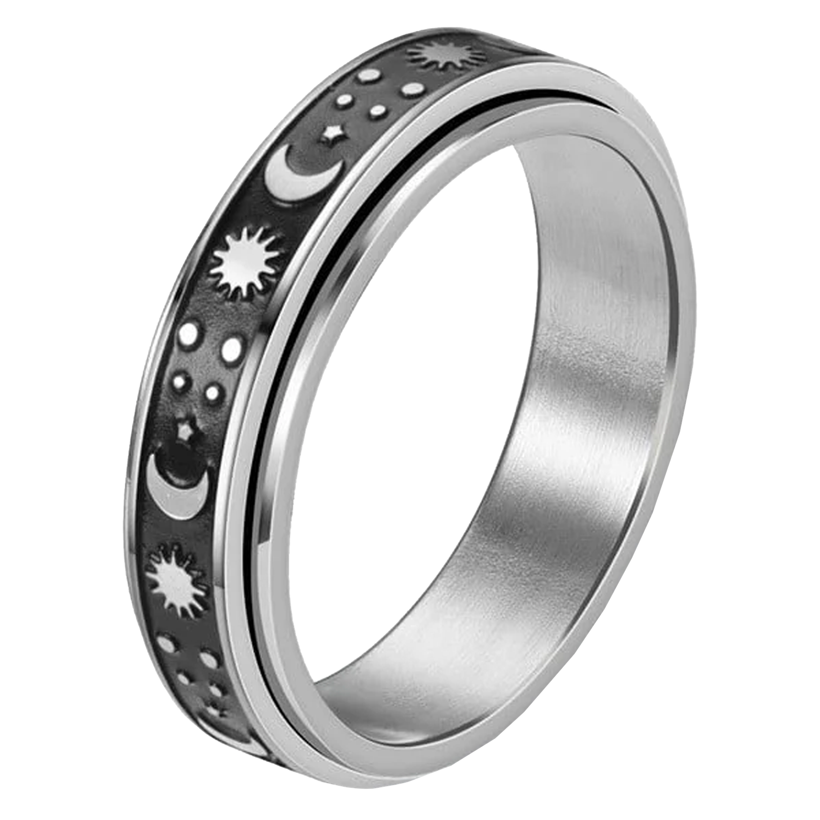 Stainless Steel Moon, Sun, & Stars Spinner Ring