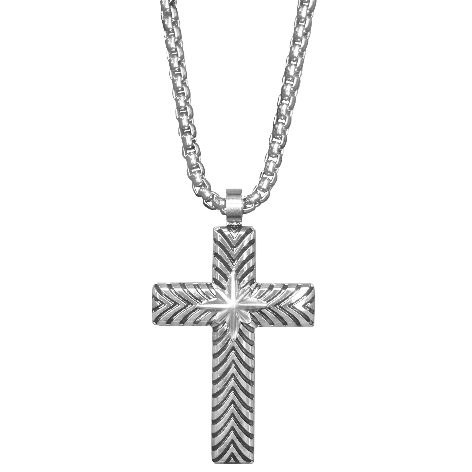 Stainless Steel Necklace of Cross w/ Star in Center