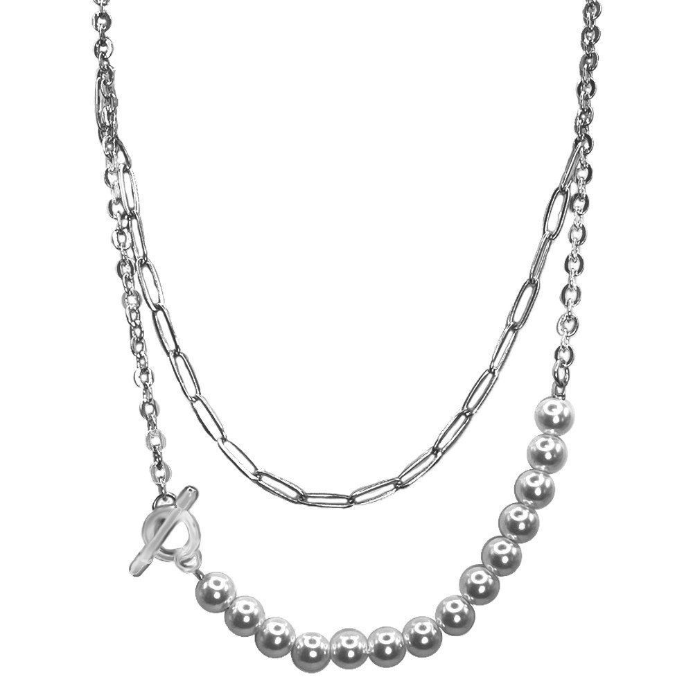 Stainless Steel Necklace With Pearls And Toggle Lock