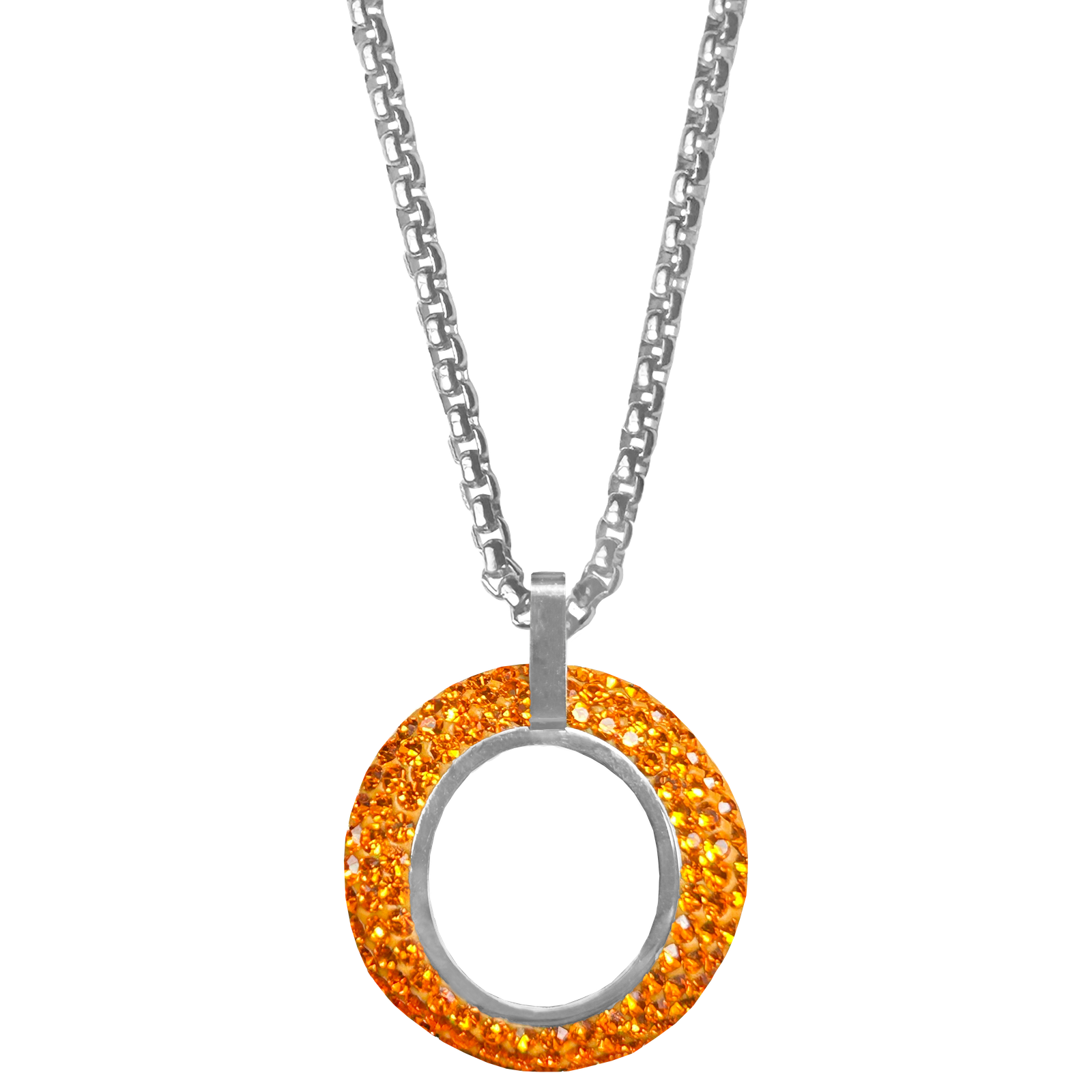 Stainless Steel Orange CZ Circle Necklace