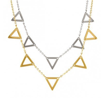 Stainless Steel Oval Link Necklace With Triangular Design Charms