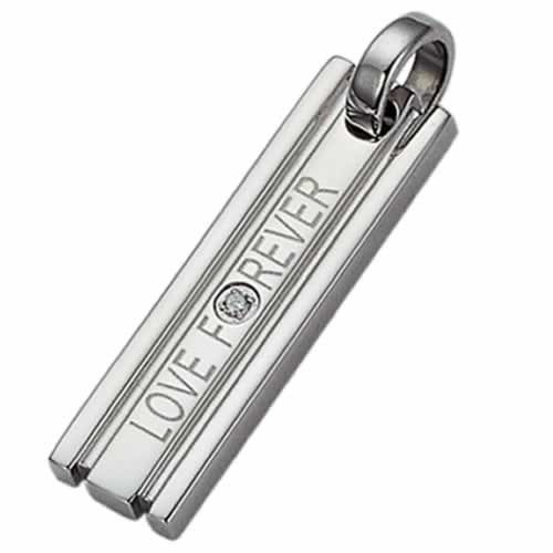 Stainless Steel Pendant w/ Diamond and “LOVE FOREVER” Script