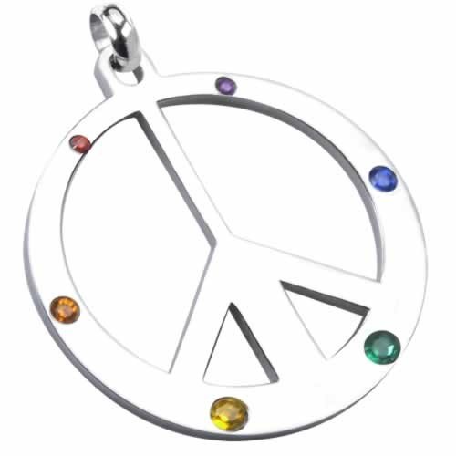 Stainless Steel Rainbow Peace Sign Pendant