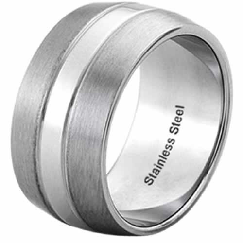 Matte Finish Stainless Steel Ring with Shinny Stripe In The Middle.