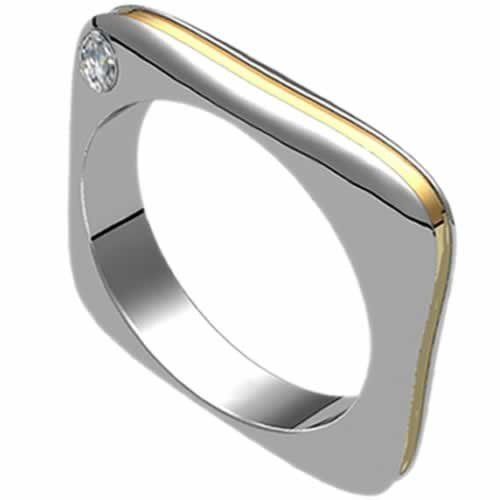 Stainless Steel Ring with 18K Gold Stripe and Diamond