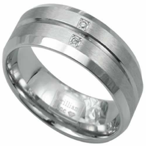 Briliant Line Stainless Steel Ring With 2 Points Of A Carat Diamond.