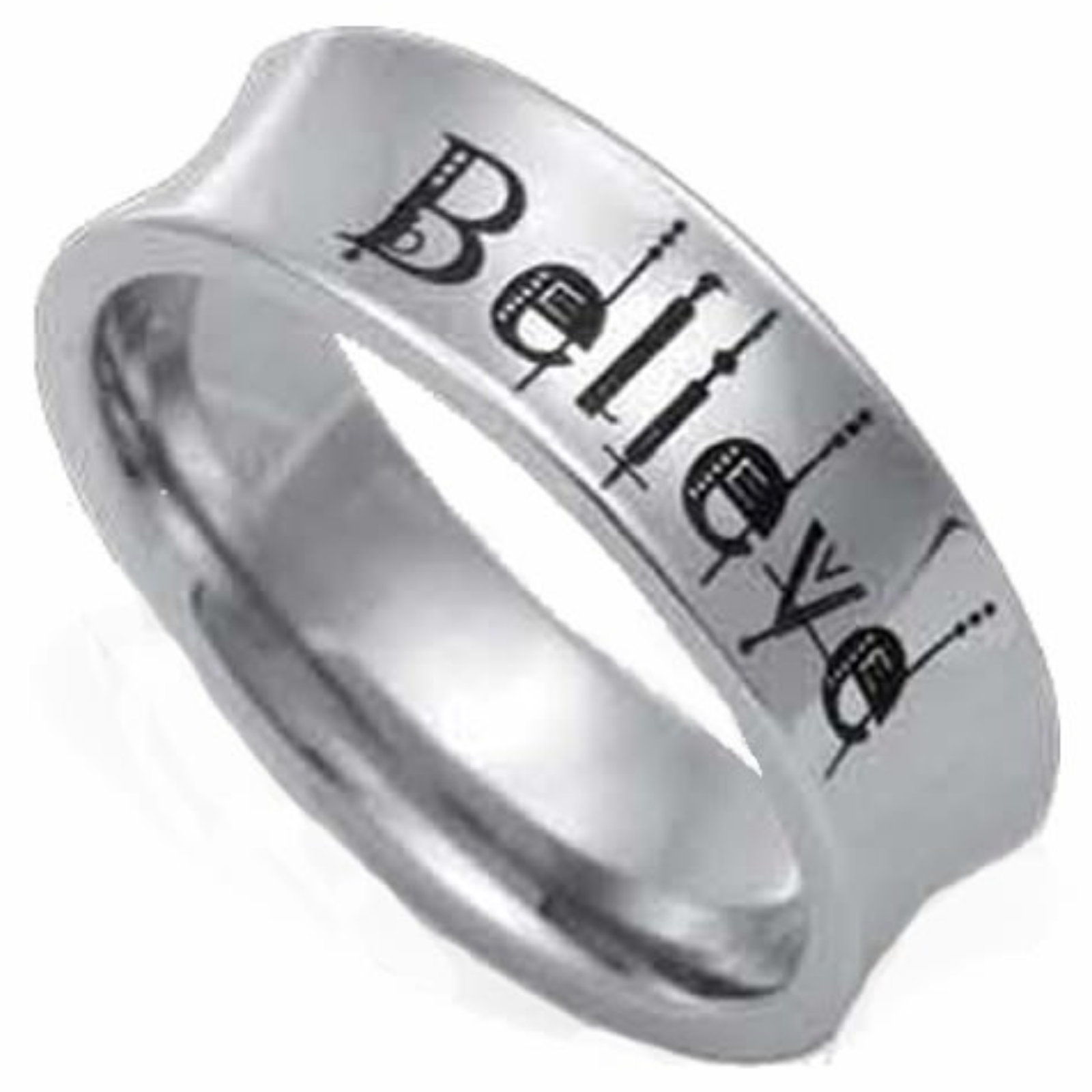 Stainless Steel Ring With “Believe” Inscription.