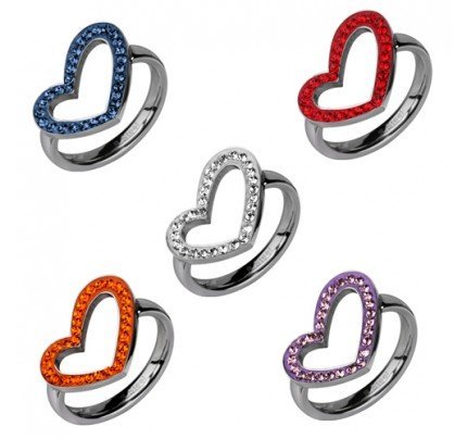 Stainless Steel Ring With CZ Encrusted Cut out Heart.