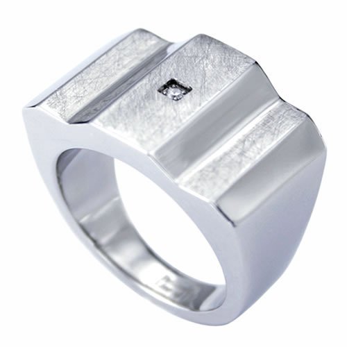 Stainless Steel Ring with a Brushed Steel Surface and Diamond.