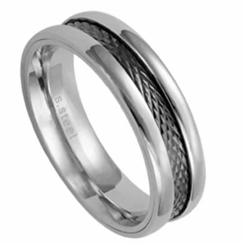 Stainless Steel Ring With Internal Diamond Cut Gray Colored PVD