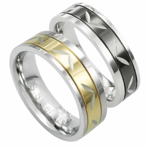Stainless Steel Ring with Design. Available with Black PVD Stripe Or Gold PVD Stripe