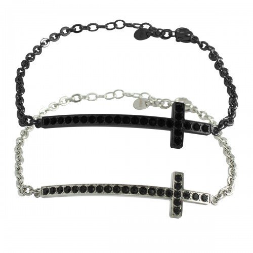 Stainless Steel Rolo Bracelet with Steel/Black Jeweled Cross