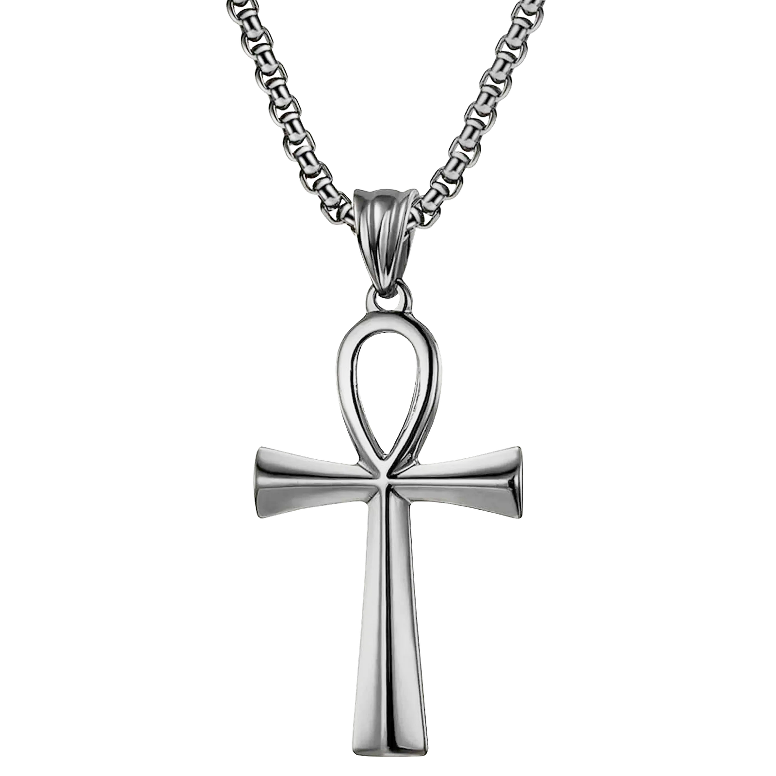 Stainless Steel Rolo Chain with Ankh Pendant