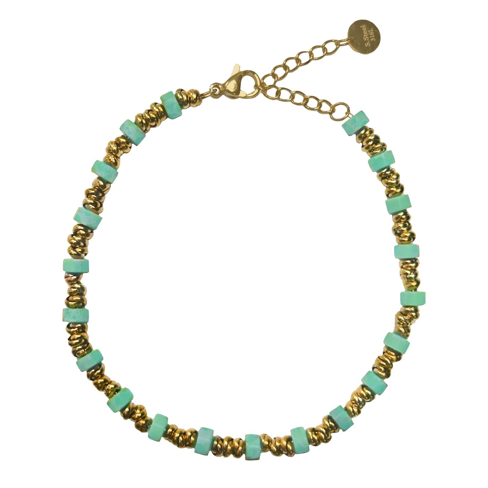 Stainless Steel Rondelle & Natural Stone Bead Bracelet
