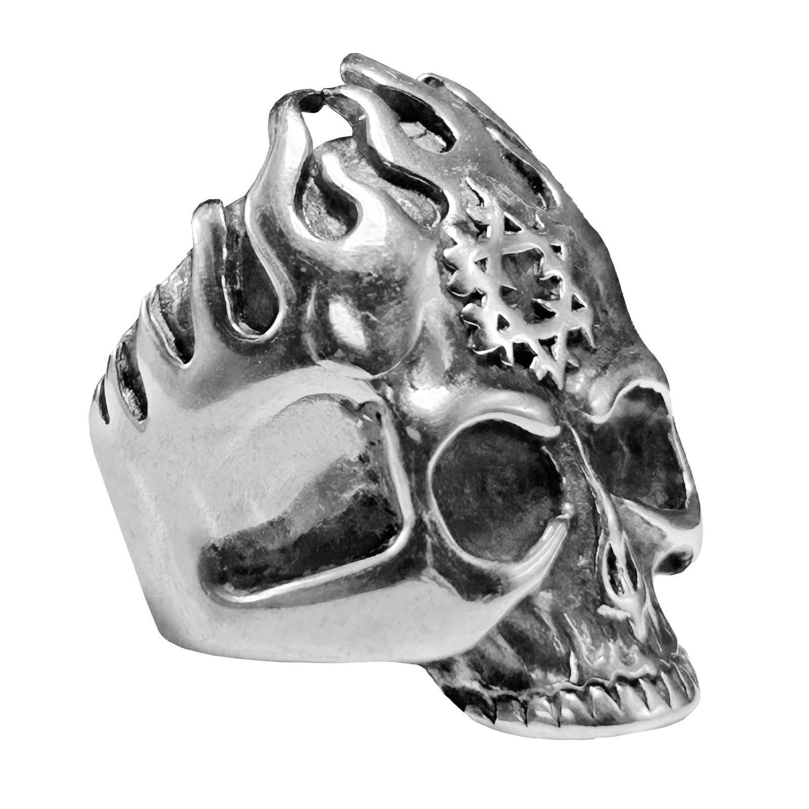 Stainless Steel Skull Ring with Flame