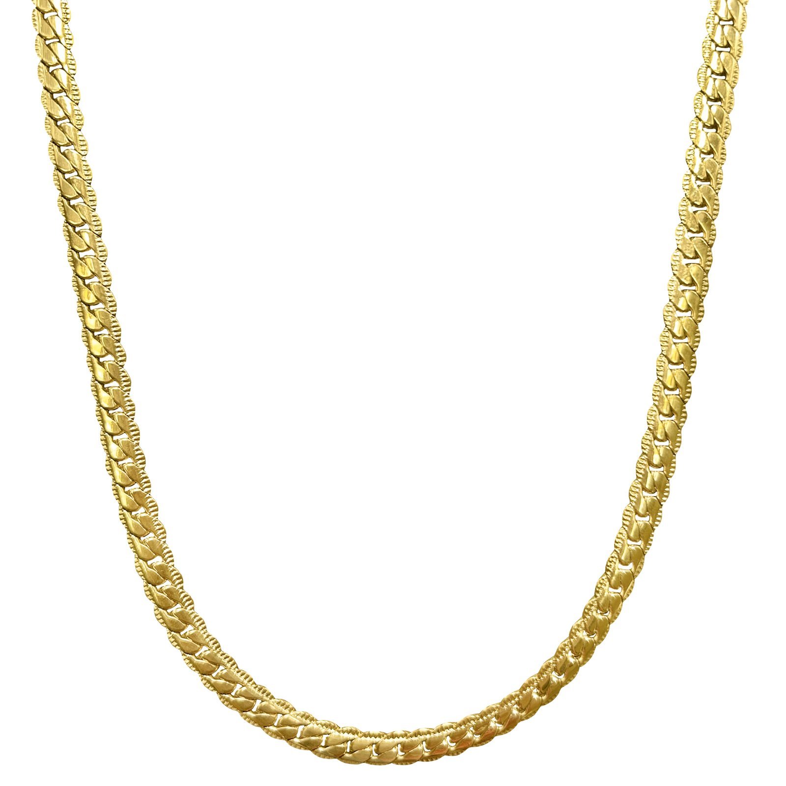 Stainless Steel Textured Flat Cuban Chain Necklace