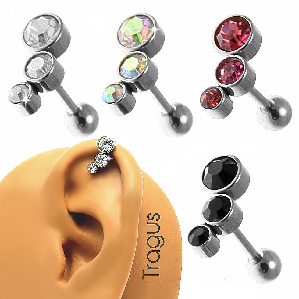 Stainless Steel Tragus/Helix Ear Piercing Barbell with 5,4, and 3mm Cascading Stones. Four Colors To Choose From!!