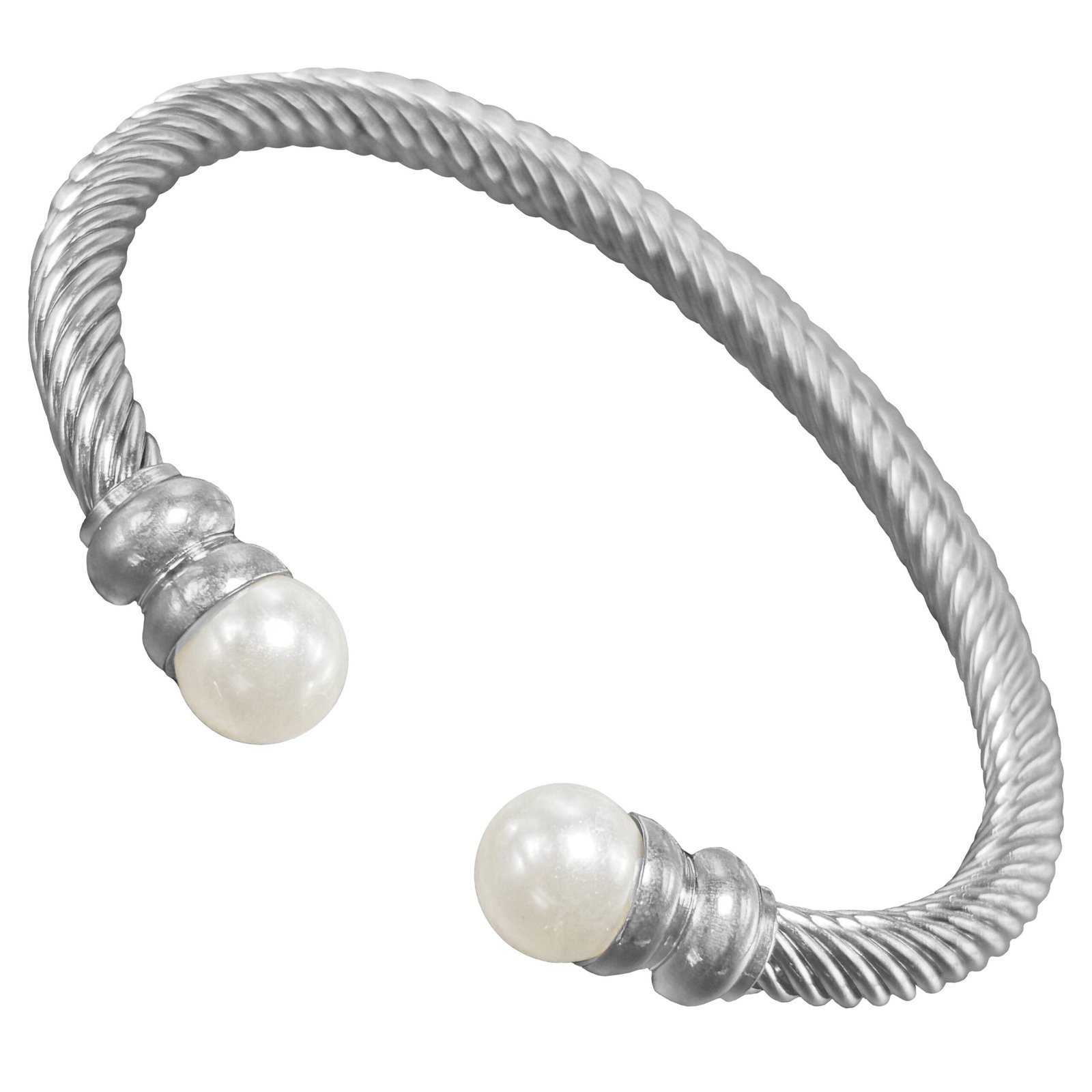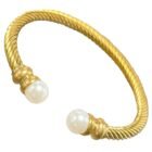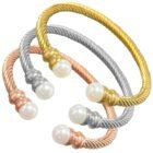 Stainless Steel Twisted Bangle with Pearls