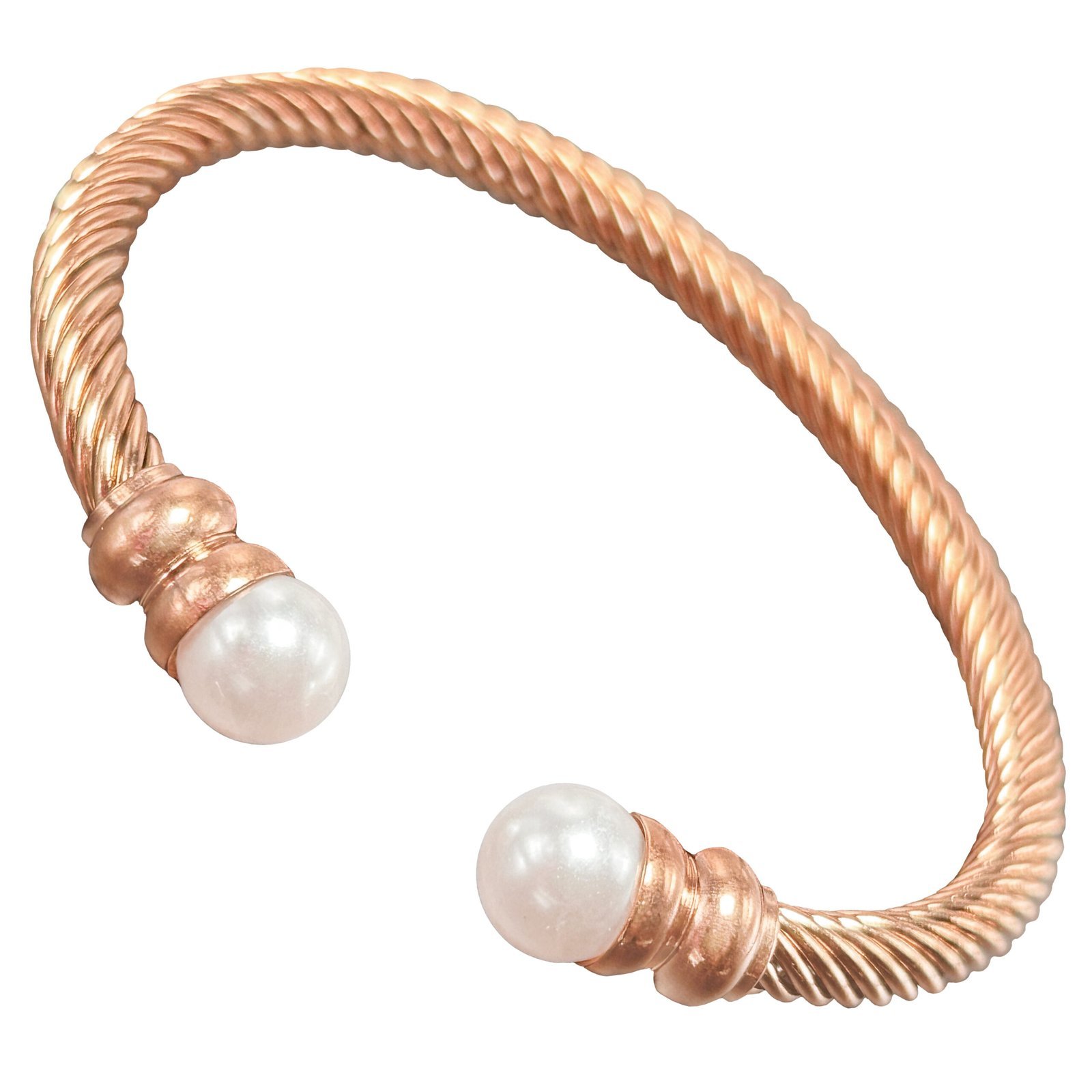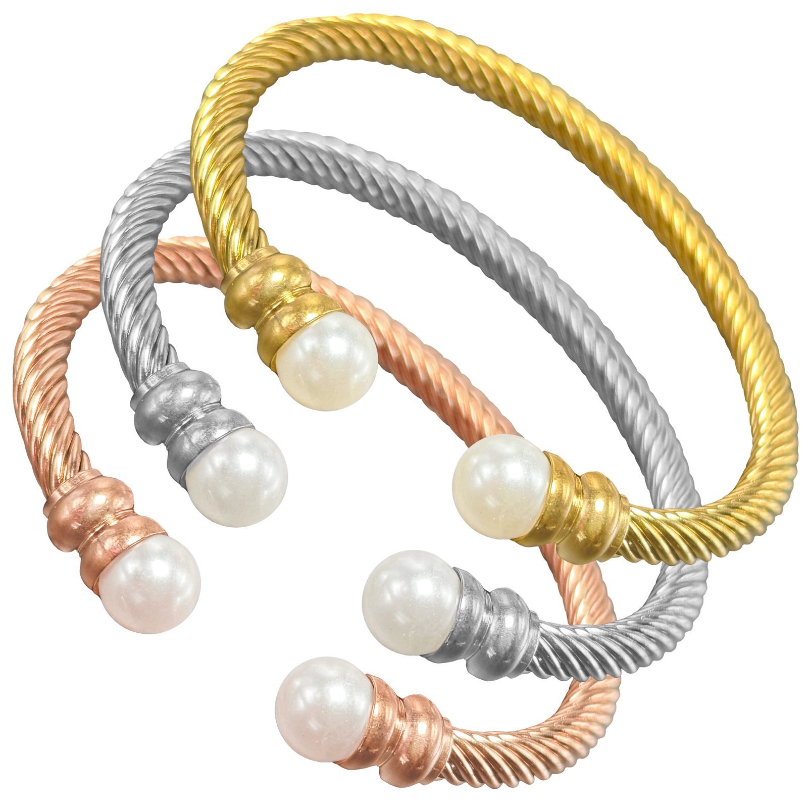 Stainless Steel Twisted Bangle with Pearls quantity
