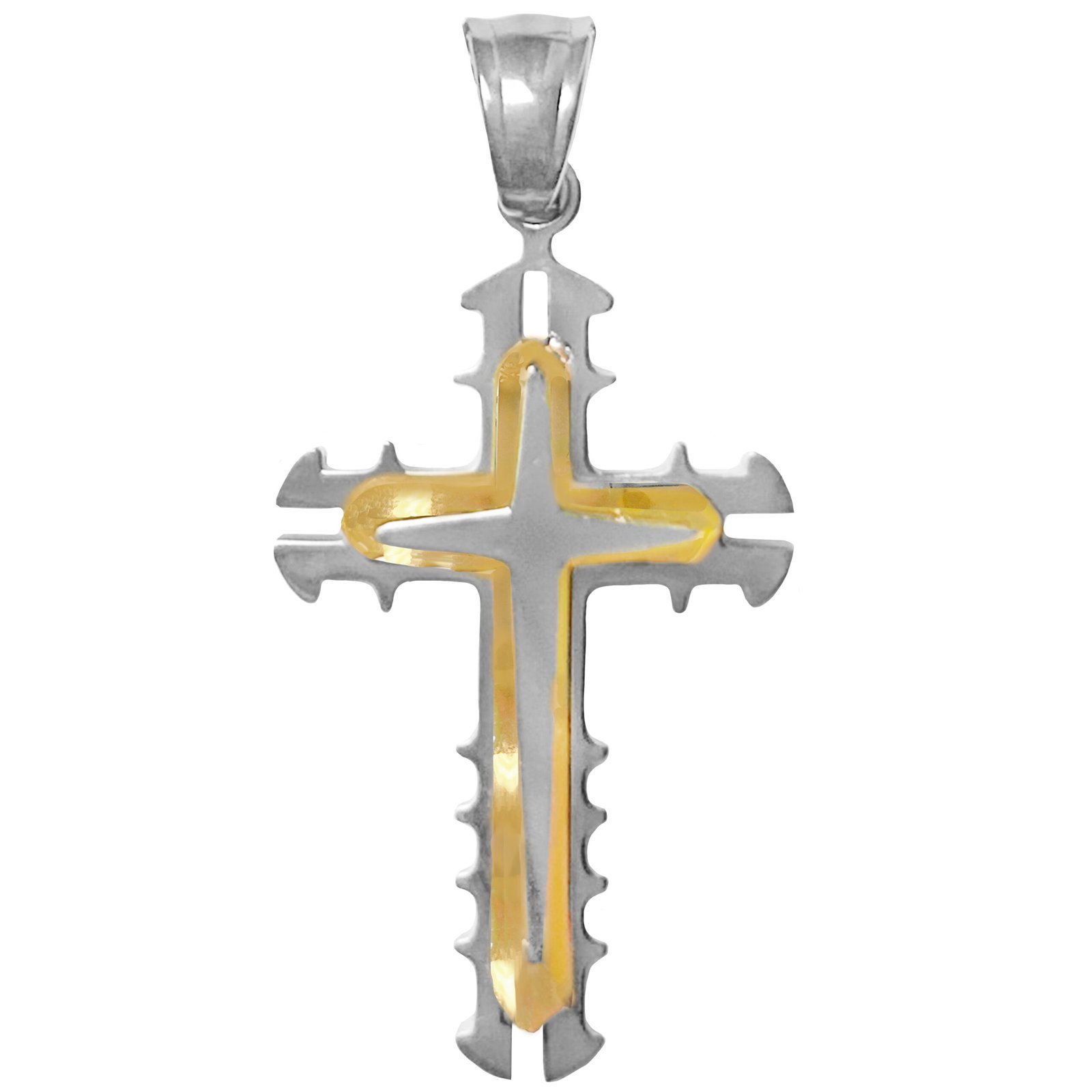 Stainless Steel Two-Toned Cross Pendant with Ridged Edges